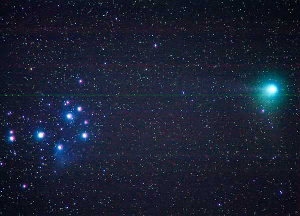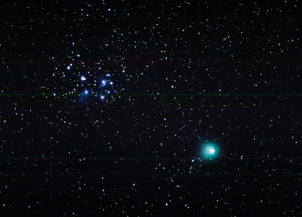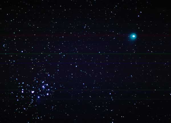 マックホルツ彗星とすばる すばる(プレアデス星団)に接近中の彗星です。 |