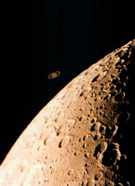 土星食(出現後) 上弦の2日程前(月齢6日)の月によって、土星が隠された後に出現した 様子を捕らえました。私の30年あまりの天文歴の中でも記憶に無い程条件の良い 土星食でした。 |