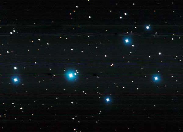 プレアデス星団 星の村に設置してあった望遠鏡で、初めて撮影した写真です。 |