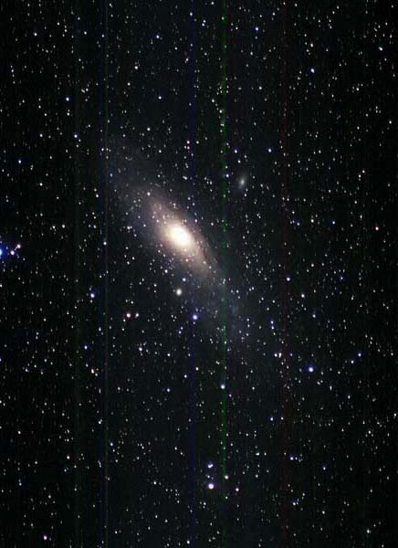アンドロメダ大星雲 10cm屈折望遠鏡で、230万光年のかなたにある私たちの銀河系の近く にある銀河の姿を撮影しました。肉眼でもぼんやりと見ることができます。 |