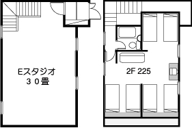 宿泊はEスタジオ。1階がスタジオ・2階が宿泊所。