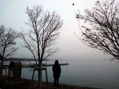 日曜日。老人?二人組みは早朝山中湖ドライブへ。霧で何も見えませんでした。