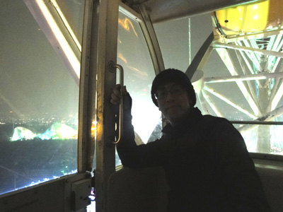 観覧車に乗ります。一人600円です。回数券を買うと二人で1000円で乗れます。