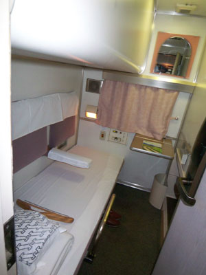 窓も高いのでホームを気にすることもない。下段、天井が高く、人が立てるし、普通の時は席も普通なので、
