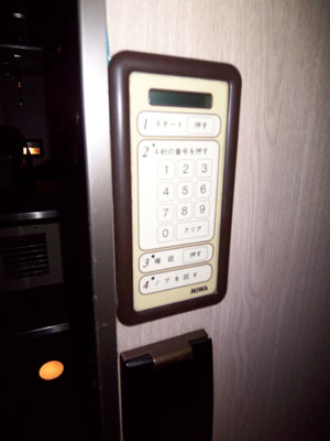5号車の個室の鍵は4桁の暗証番号でした(普通の鍵の号車もあるようです)。