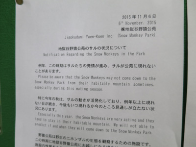 最近は湯田中のスノーモンキーを観光名物しているみたいです。ただ野生の猿ですので出現するかは猿次第です。