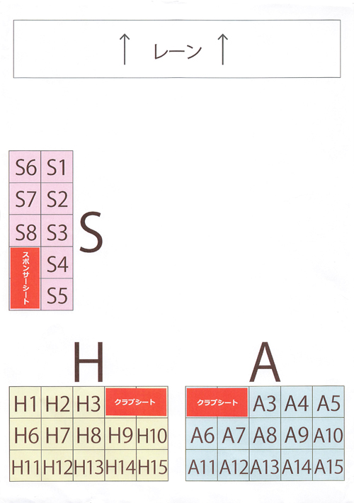 Aがアウェー、Hがホームになります。私は推しのチームが特に無かったのでSのサイドに座りました。