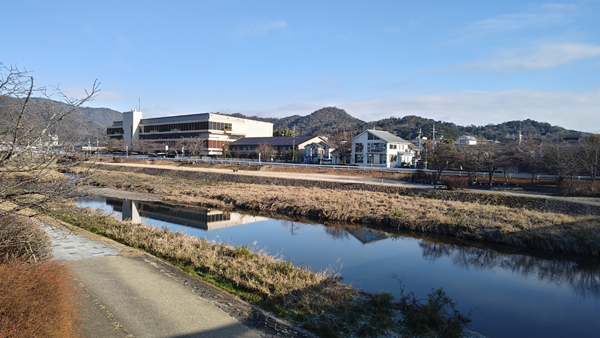 終点バス停から川を渡って徒歩5分ぐらいです。