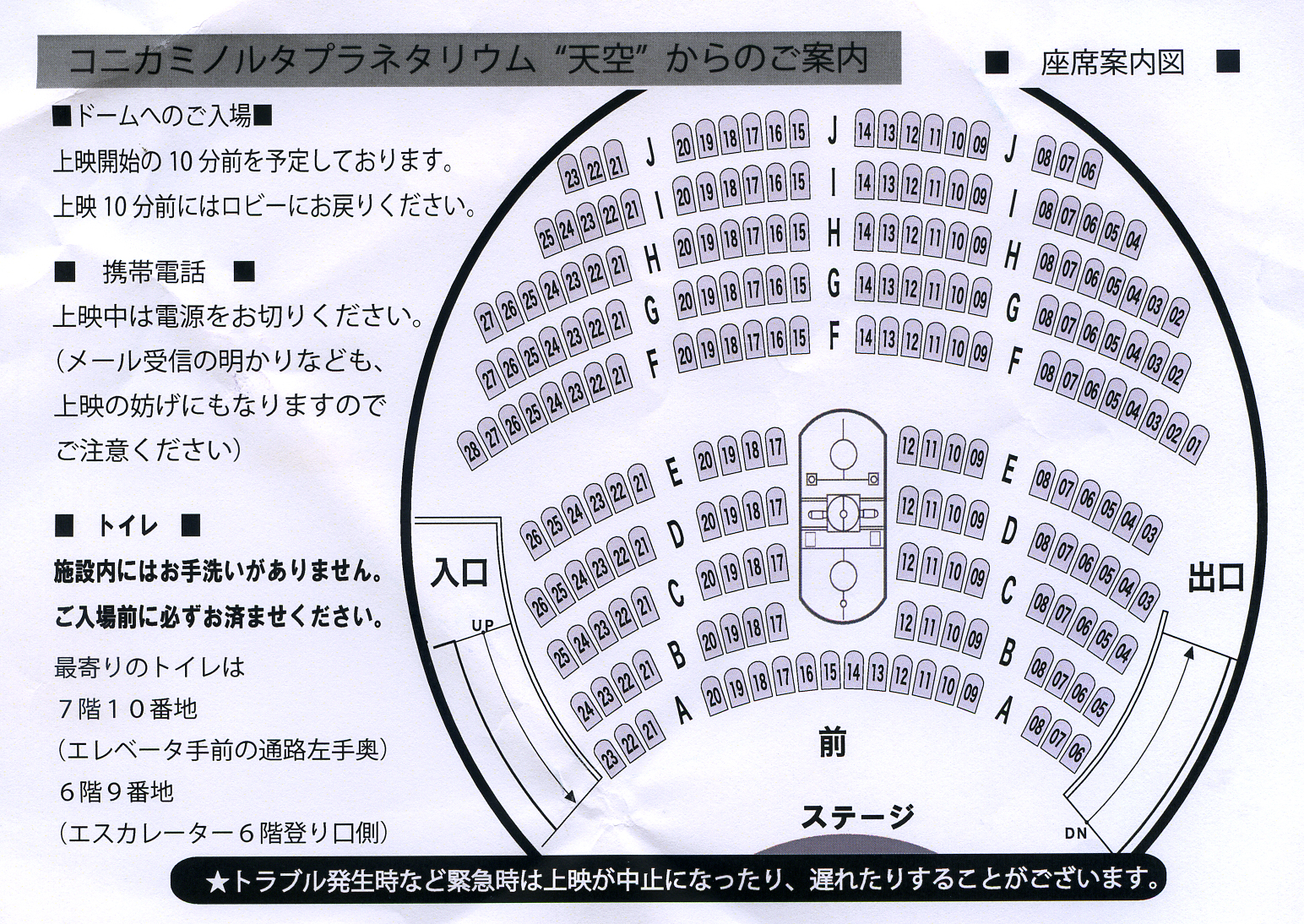 ここのプラネは、今迄と一番異なるところは、映画館とかと同じ様に指定席ということです。