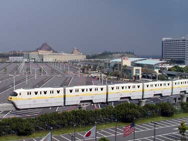15時に早々ホテル到着。ホテルの前にはすでにモノレールが試運転を開始していた。
