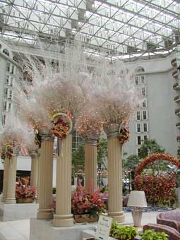 ドアを入るとホテルは真ん中が全部吹き抜けで全体的にお花が飾ってありお洒落な感じ。