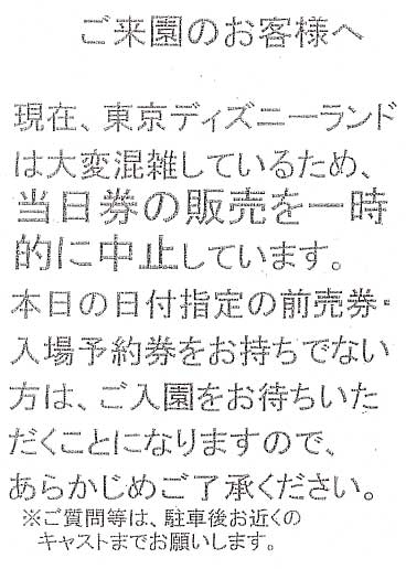 午前中は仕事をしてから会社を出て、午後2時頃パーク到着。当日は天気も良く、案の定行った時にはすでに入場制限がかかっていました。しかし、なんと駐車料金がただでした。これは、チケットが買えない場合、すぐに帰る事も考えられる対応のようですが私は元々スターライトねらいでしたので、1,700円得しました。これは今後も使えるかも知れません。