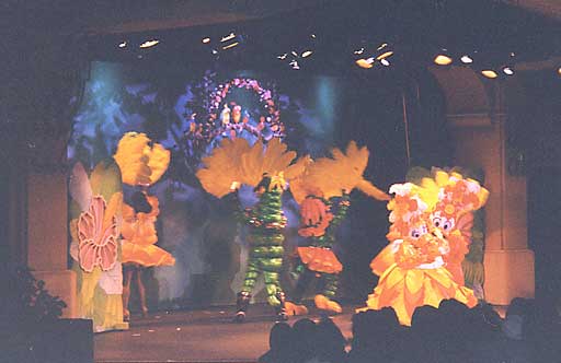 18時からミッキーのアドベンチャーランド・マルディグラショーを見学。席に座らずでも後からでも見れます。