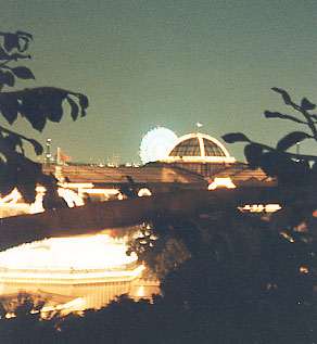 パーク内は激混みでしたので、いつもは見向きをしない(失礼?)、スイスのファミリーツリーに上ってみました。しかし、意外にも夜景がとても綺麗でした。特に隣の葛西臨海公園に出来た大観覧車のイルミネーションもはっきり見えて良かったです。