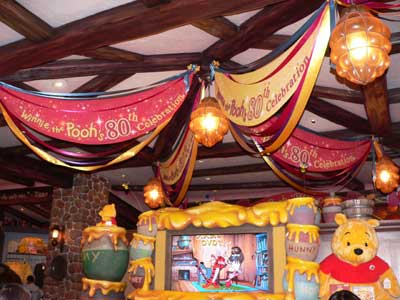 プーさんが80周年で、プーさんのショップが特別の飾りつけをしていた。