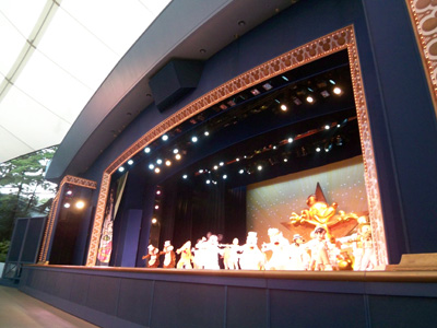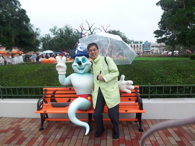 雨でショー関係はことごとく中止。しかし、エレクトリカルパレードは実施するとの放送。