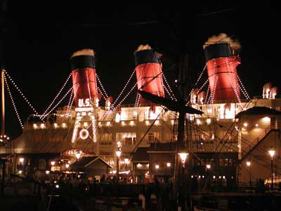 食事後は、先程食事の時見たSSコロンビアを覗きに行く。船の甲板には食事をしなくても入れる。本物の船のようである。パークの反対側の甲板では本当の東京湾の海が見える。でも真っ暗で少し怖い感じでもある。