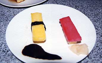 アンコールを出て、朝予約していたサクラに18時少し過ぎに向かう(アンコールから3分ぐらい)。さくらに行ったら、外のバルコニーの船の見える特等?席通された。船での18時15分の”セイル・アウェイ”ショーが見れてラッキーだった。刺身の盛り合わせと天ぷらの盛り合わせ頂く。ともに美味しかった。デザートにこの店名物?の寿司アイスを食べた。寿司の形をしたアイスで、味は全くのアイスである。人は物を食べる時、口(舌)で食べるのはもちろん目でも食べるのだなと思った。なぜならこの寿司アイスを食べていると、頭と舌が何か違和感を起こして素直に美味しいと感じられないのである。ただ外の席ではちょっと暗いので食べているものが良く見えなかった。