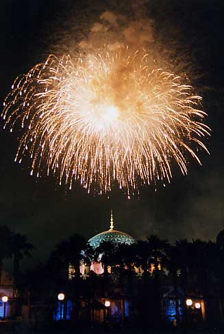 これもアメリカのディズニーランドで見たが、日本のは花火が中心。アメリカのはレザー光線が中心であった。