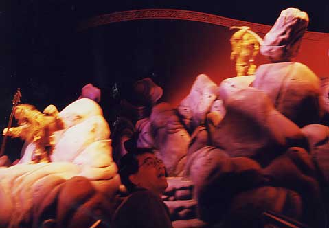 9時30分”マジックランプシアター”に戻り、入ろう思ったが、15分程待ち時間があったので”キャラバンカルーセル”に乗る。がら空きで好きな動物に乗れた。私はお約束のジーニーに乗る。誰も居ないかったので、はしゃいで乗っていたせいか途中でシステムの故障。大きなお世話でまた最初からから回転してくれて普通の倍乗れて、おかげで”マジックランプシアター”の最終回には遅刻。次回のお楽しみにとなった。10時閉園。名残惜しみつつ駐車場に向かう。帰りの”ミステリアルアイランド”に向かう途中、もう一つ滝がある。この滝は、滝の裏が通れるものであるが、当然滝は表から見ても裏から見ても変わらない。