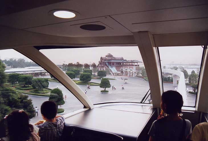 ここで面白いのは、ディズニーランドは絶対にバックステージを見せないのがポリシーであるが、このモノレールに乗ると少しだけディズニーランドのバックステージを覗くことが出きる。バックステージでにも結構広い道路が走っているのが見えた。そんな目で乗ってみると楽しめると思う。
