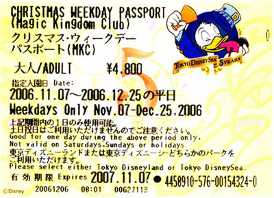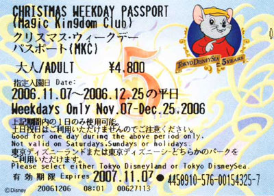 今回はクリスマス・ウィークデー・パスポートを購入。