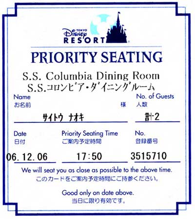 そこからS.S.コロンビア・ダイニングルームの予約に向かい、18時を予約しようとしたが、17時50分をGET。