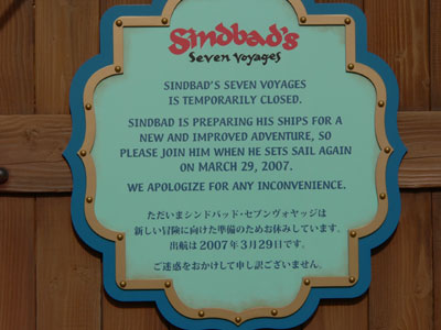 途中シンドバット横を通ったが、来年の3月まで改装中でお休みであった。